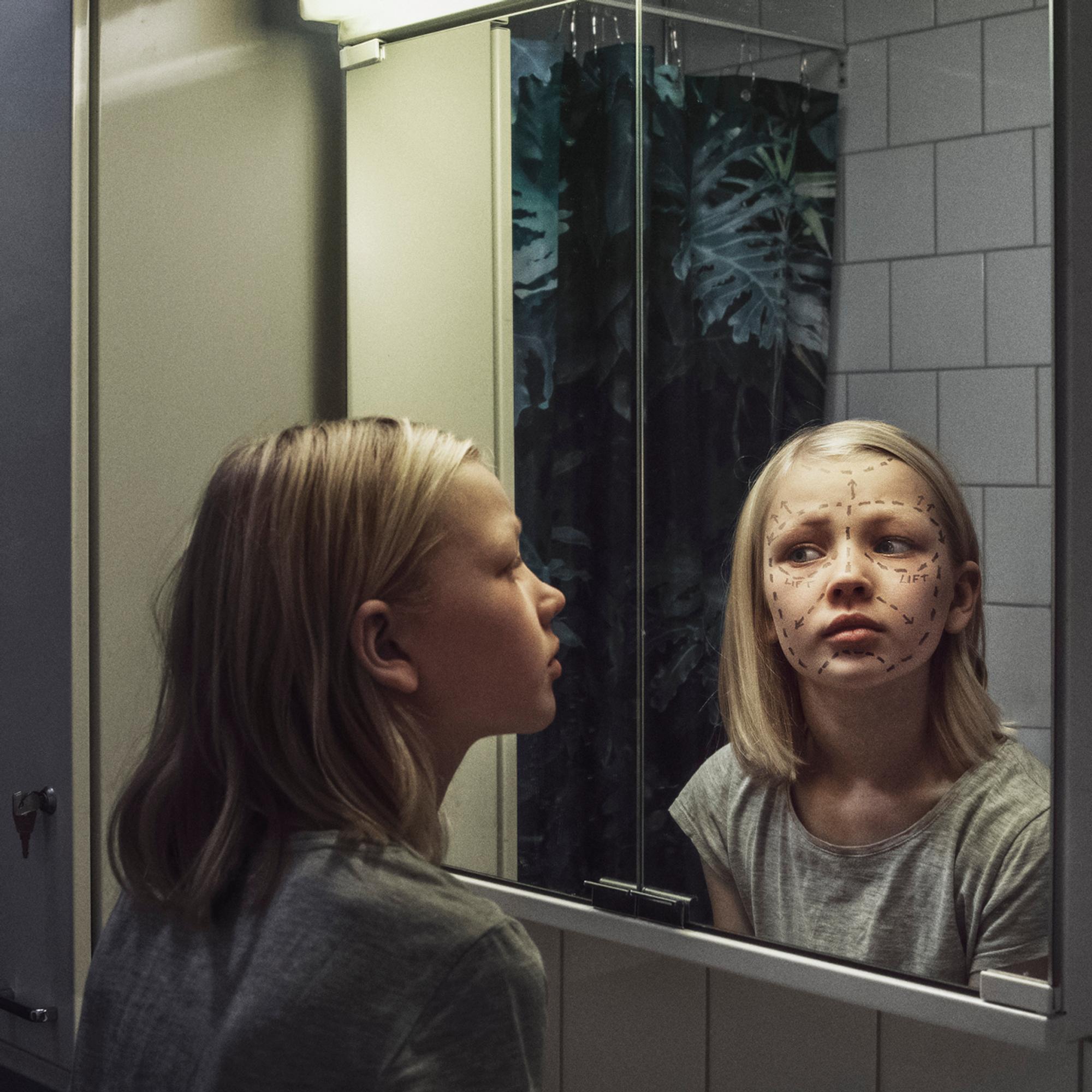 The campaign pictures show two young people looking themselves in the mirror and seeing areas on their faces marked for improvements. The strong imagery compels viewers to think why children and young people might consider altering their bodies. The campaign pictures were taken by Tuukka Koski from Koski-Syväri and edited by Kasimir Häiväoja from FLC Helsinki. The idea was created by TBWA\Helsinki.